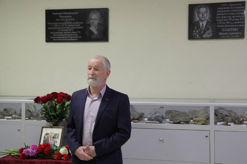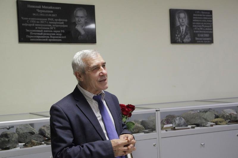 1 ноября в Главном учебном корпусе Воронежского государственного университета состоялось торжественное открытие мемориальной доски, посвященной Заслуженному деятелю науки Российской Федерации, Почётному разведчику недр, члену-корреспонденту РАН, профессору, заведующему кафедрой минералогии, петрографии и геохимии ВГУ (1968–2017) Николаю Михайловичу Чернышову. В мероприятии приняли участие представители университетского сообщества, ученики, друзья и близкие ученого.