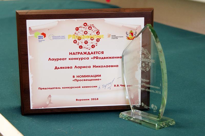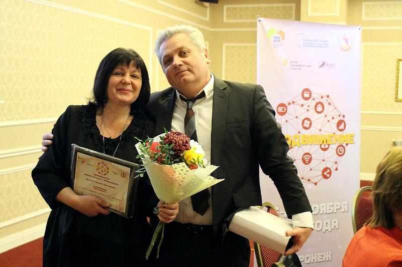 В рамках форума прошла торжественная церемония награждения победителей конкурсов «PRодвижение», направленных на выявление и поощрение лучших практик собственного продвижения НКО в информационном пространстве и поощрение масс-медиа, оказывающих информационную поддержку НКО. В число лауреатов вошла ведущий специалист Управления по довузовской работе и набору студентов Воронежского государственного университета, доцент кафедры телевизионной и радиожурналистики ВГУ Лариса Дьякова. Она получила награду в номинации «Просвещение».