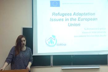 В приветственном слове координатор проекта, доцент кафедры регионоведения и экономики зарубежных стран Ирина Форет подчеркнула важность изучения опыта Европейского Союза по вопросам регулирования правового статуса беженцев, их приема и дальнейшего распределения.