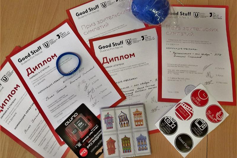 Сразу четыре победы в III Международном студенческом фестивале дебютных фильмов и журналистских практик GoodStuff – это результат участия наших студентов в ежегодном конкурсе, проводимом на базе Томского государственного университета. В составе экспертного жюри конкурса – представители теле- и радиокомпаний Праги, Москвы, Краснодара, Томска, преподаватели вузов России.