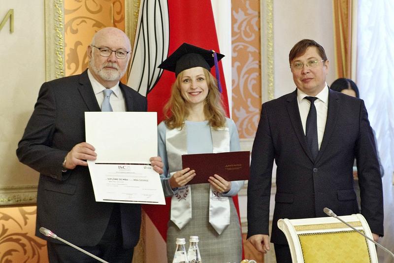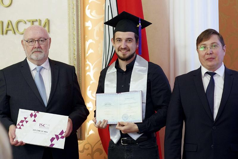 25 апреля в Правительстве Воронежской области состоялась торжественная церемония вручения дипломов выпускникам международной программы двойного диплома «Executive MBA», которую реализует ВГУ совместно с Высшим институтом коммерции Парижа (ISCParis). Собравшихся поздравили первый заместитель председателя правительства Воронежской области Владимир Попов, ректор ВГУ Дмитрий Ендовицкий и заведующий отделением Маркетинга, член комиссии по разработке учебных программ Высшего института коммерции Парижа (ISC Paris) Кабарэ Франсуа Андрэ Жозеф.