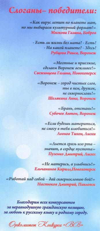 Работы победителей станут основой наглядной агитации против сквернословия и в защиту культуры речи в Воронеже.