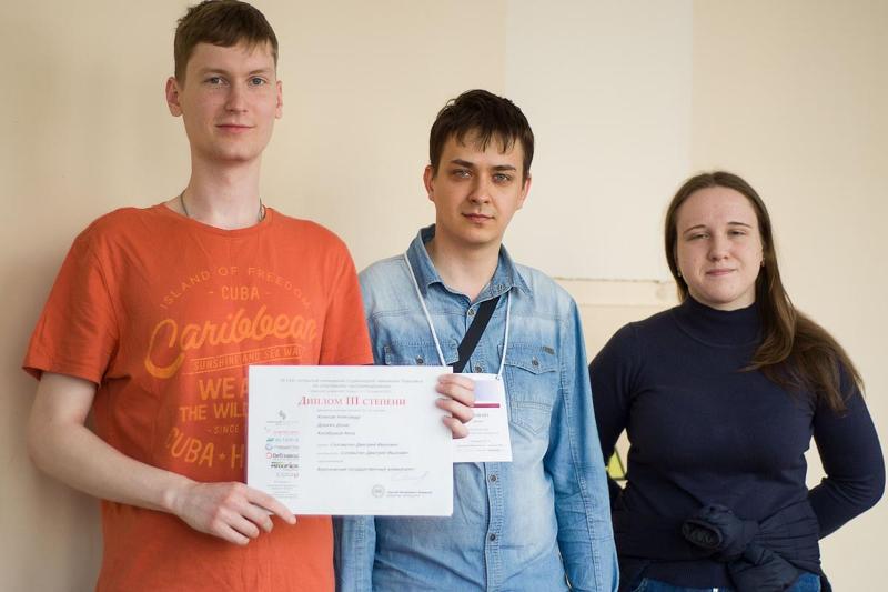 - 8 задач и диплом третьей степени, команда: Артем Пивоваров (ПММ, 4 курс), Любовь Лесных (ПММ, 4 курс), Михаил Головай (ПММ, 4 курс)
