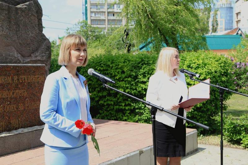 Участники митинга почтили память погибших в годы Великой Отечественной войны минутой молчания и возложили к памятнику цветы. Затем в ВГУ продолжилось чествование ветеранов.