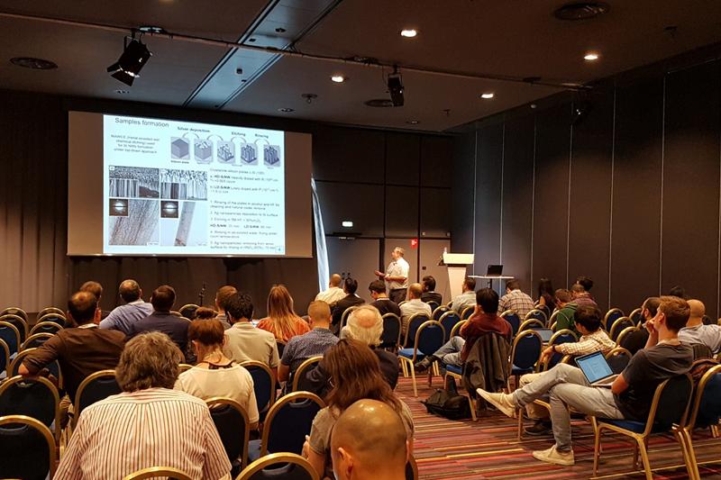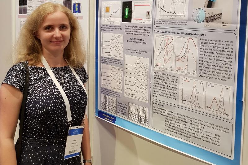 Доцент Сергей Турищев и научный сотрудник Елена Паринова представили доклады «Atomic, electronic structure and composition synchrotron investigations of top-down silicon nanowires covered by MOCVD tin oxide» (Синхротронные исследования атомного, электронного строения и фазового состава top-down выращенных кремниевых нанонитей, покрытых MOCVD оксидом олова) в качестве устного, «Electronic structure and composition of porous silicon nanopowders» (Электронное строение и фазовый состав нанопорошков на основе кремниевых нанонитей) в качестве стендового.