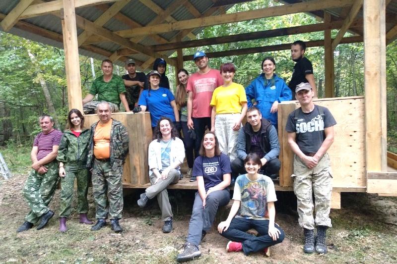 С 13 по 15 августа в государственном заповеднике «Калужские засеки» проходила вторая смена волонтёров Русского географического общества, в которой принял участие представитель Молодежного клуба Воронежского отделения РГО, магистрант факультета географии, геоэкологии и туризма Воронежского государственного университета Артём Погорелов. Целью волонтёров было установить новую смотровую вышку с кормушками для зубров. Кроме того, волонтёры занимались погрузочно-разгрузочными работами, закручивали сваи и застилали площадку песком и щебнем под новую наблюдательную вышку.
