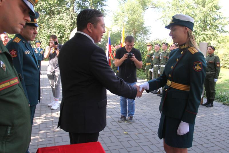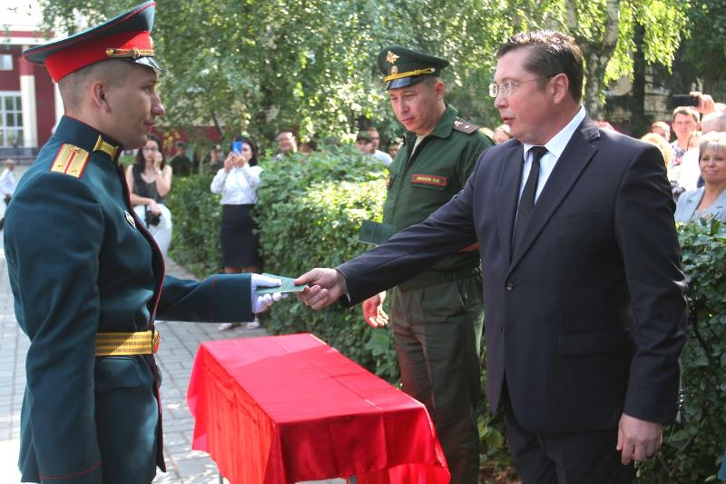2 сентября в сквере рядом с Главным учебным корпусом Воронежского государственного университета состоялось торжественное присвоение первого офицерского звания курсантам Военного учебного центра ВГУ. От лица ректората и от себя лично выпускников поздравил ректор Дмитрий Ендовицкий: