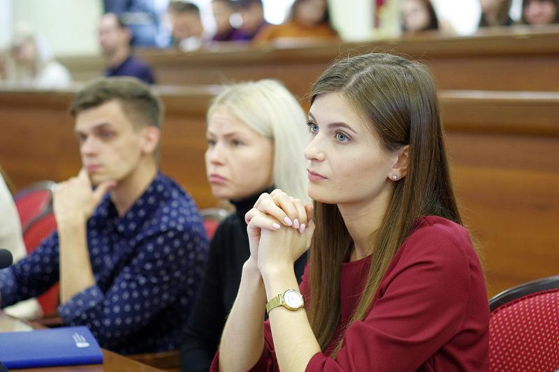 В конференц-зале прошла встреча «Молодые профессионалы – конкурентное преимущество России». Заместитель начальника отдела кадров управления государственной службы и кадров правительства Воронежской области Мариета Севергина и начальник Отдела развития карьеры и бизнес-партнерства Кристина Кулешова рассказали студентам ВГУ о существующей системе привлечения молодежи на государственную гражданскую службу. В частности, речь шла об организации молодежных стажировок в органах государственной власти Воронежской области. Студентов проинформировали о том, какие специалисты сейчас нужны на госслужбе, об отношении молодых специалистов к будущему месту работы, критериях при выборе работодателя, процедуре отбора стажеров, а также структуре программы стажировки.