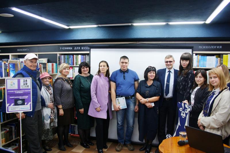 16 октября на площадке книжного супермаркета «Амиталь на Пушкинской» начал новый восьмой по счёту сезон проекта «Большой университет – большому городу», который курирует Отдел по довузовской работе Воронежского государственного университета. Старший преподаватель кафедры физической географии и оптимизации ландшафта факультета географии, геоэкологии и туризма ВГУ, секретарь Совета Воронежского отделения РГО Вадим Свиридов показал собравшимся видеоролик о географическом обществе, а также рассказал о его истории, деятельности и персоналиях.