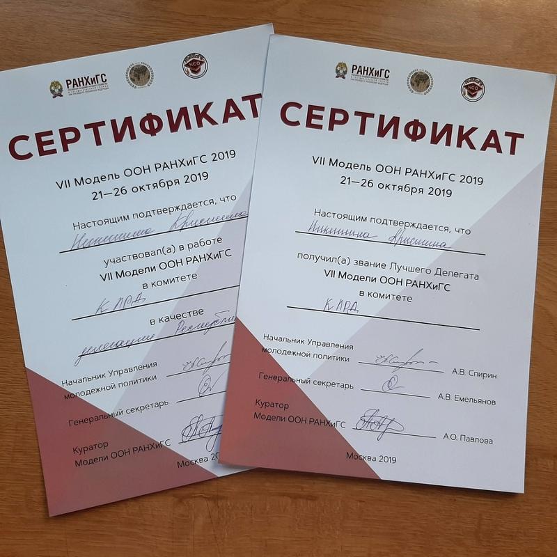 В результате работы комитета была принята резолюция, а также решение по кризисной повестке дня. Благодаря своей активности и конструктивной позиции во время ведения заседаний обе студентки были отмечены наградами: Лучшим Делегатом стала Кристина Никитина, а звания Конструктивного Делегата удостоилась Мария Гречишкина.