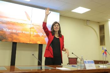 «Кто я сейчас? Чего хочу в будущем? Что я буду делать после окончания университета?» – лектор отметила, что это именно те вопросы, с которых нужно начинать свой путь в международной карьере. Ирина подчеркнула, что 4–5 лет после окончания университета – идеальное время, чтобы реализовать свои способности. Важно уже сейчас начинать составлять резюме и сочинять убедительный ответ на вопрос: «Почему на эту должность должны выбрать именно меня?»