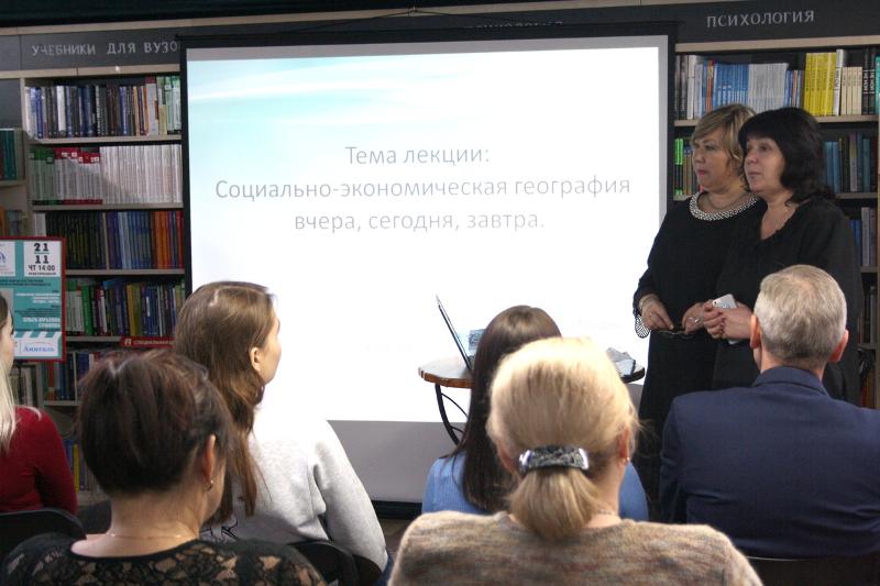 21 ноября в книжном супермаркете «Амиталь на Пушкинской» состоялась публичная лекция доцента кафедры социально-экономической географии и регионоведения Ольги Сушковой на тему «Социально-экономическая география вчера, сегодня, завтра». Лекция проходила в рамках проекта «Большой университет – большому городу» и продолжила серию мероприятий, посвященных 85-летнему юбилею факультета географии, геоэкологии и туризма Воронежского государственного университета. Курирует проект Управление по довузовской работе и набору студентов. Ведущая – доцент факультета журналистики Лариса Дьякова.