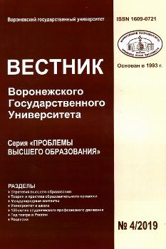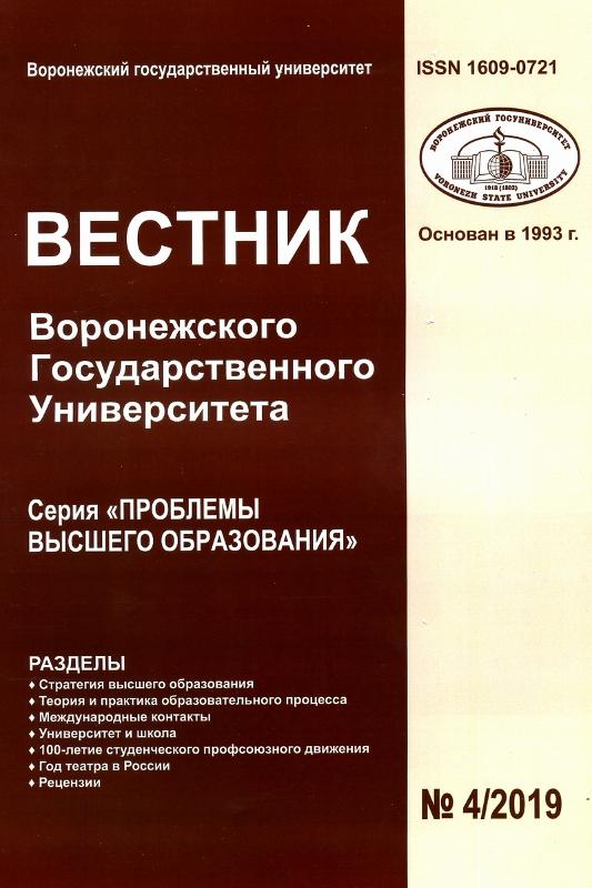 Опубликован заключительный в этом году номер журнала «Вестник ВГУ» – серия «Проблемы высшего образования». В нем семь разделов: «Стратегия высшего образования», «Теория и практика образовательного процесса», «Международные контакты», «Университет и школа», «100-летие студенческого профессионального движения», «Год театра в России», «Рецензии». В них со статьями выступают ученые и педагоги из Воронежского государственного университета, а также вузов Воронежа, Москвы, Курска, Твери, Саратова, Екатеринбурга и других.