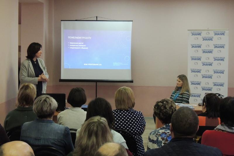В начале встречи ведущий специалист отдела довузовского образования Галина Бородкина рассказала о ресурсах «Российского общества “Знание”». Речь шла о видеотрансляциях и дистанционных образовательных технологиях. Затем активный лектор общества «Знание», кандидат медицинских наук, доцент с многолетним опытом преподавания на фармацевтическом факультете и факультете философии и психологии Воронежского госуниверситета Вера Андреева представила доклад о развитии когнитивных способностей у школьников. Участники встречи обсудили медицинские аспекты, которые влияют на головной мозг ребенка и реализацию им своих возможностей.