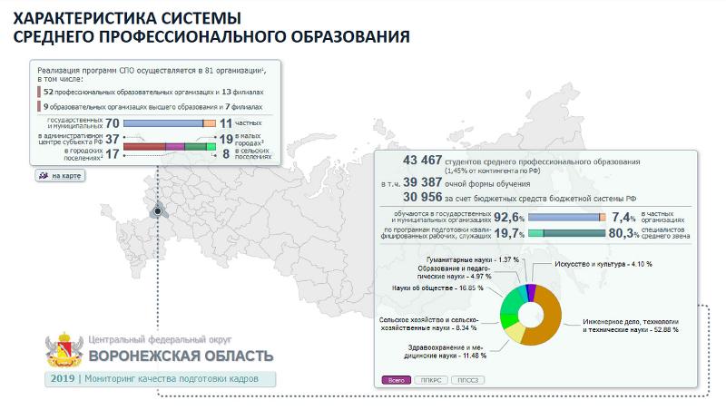 Воронежский государственный университет может по праву гордиться оценкой качества подготовки кадров в системе среднего профессионального образования по следующим критериям: образовательная деятельность, инфраструктура, финансово-экономическая деятельность, кадровый состав, трудоустройство выпускников образовательных программ СПО, социальная ответственность.