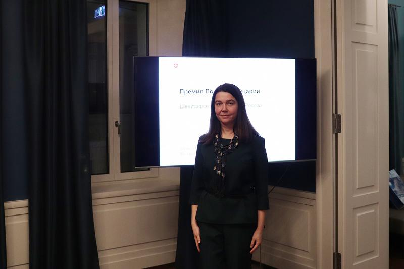 28 января профессор юридического факультета Елена Сазонникова по приглашению посла Швейцарии в России господина Ива Россье приняла участие в торжественной церемонии по случаю учреждения награды «Swiss Ambassador’s Russia» («Премия Посла Швейцарии»), состоявшейся в посольской резиденции в Москве.