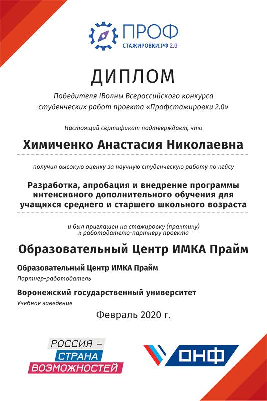 Представительницы факультета РГФ Анастасия Химиченко и Диана Тимошенко под руководством доцента кафедры теоретической и прикладной лингвистики РГФ Марины Щербаковой также приняли участие в проекте. Анастасия решила кейс на тему «Разработка, апробация и внедрение программы интенсивного дополнительного обучения для учащихся среднего и старшего школьного возраста», который был предложен Образовательным Центром ИМКА Прайм (Алтайский край, Барнаул). Диана Тимошенко работала над «Разработкой стратегии привлечения слушателей образовательной программы» по заказу московской «Ассоциации кластеров и технопарков России».