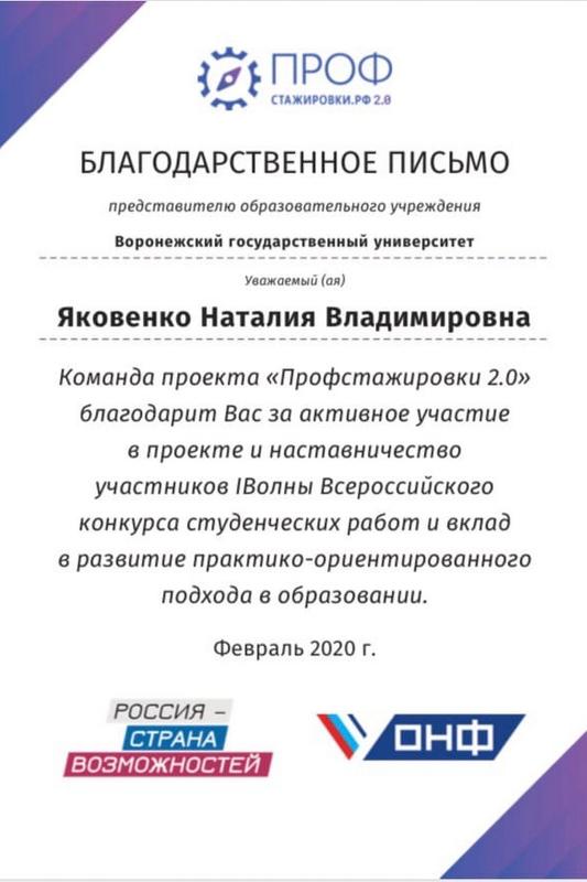 Объявлены результаты первой волны Всероссийского конкурса «Профстажировки 2.0». Студенты трех факультетов Воронежского госуниверситета – РГФ; географии, геоэкологии и туризма; экономического – вошли в число победителей.