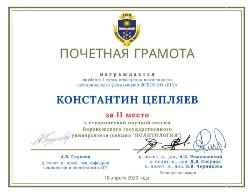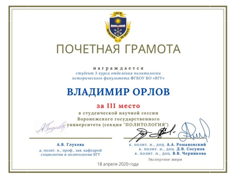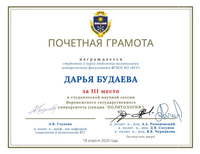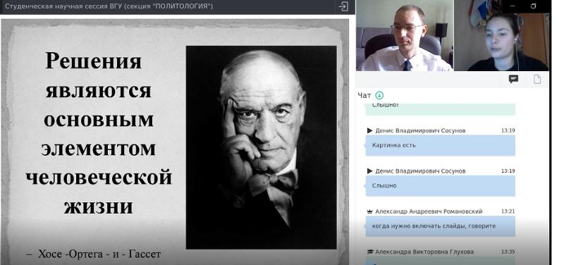 18 апреля в новом дистанционном формате прошла студенческая научная сессия на отделении политологии исторического факультета Воронежского государственного университета.