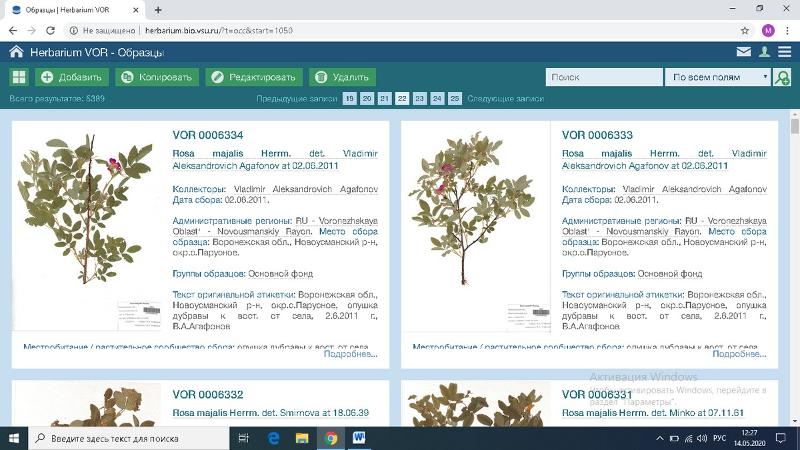 Студенты кафедры ботаники и микологии медико-биологического факультета в рамках информационно-биологической практики, которая в этом году проходит в дистанционном формате, значительно увеличили количество образцов Гербария им. профессора Б.М. Козо-Полянского ВГУ, выставленных в Цифровом гербарии ВГУ.
