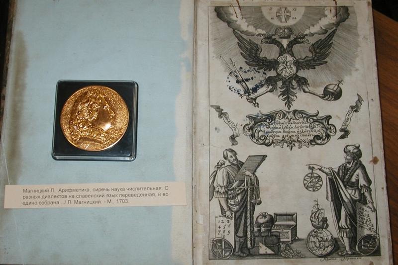 Основным учебником для обучения детей в цифирных школах XVIII века была «Арифметика, сиречь наука числительная» (М., 1703) Леонтия Магницкого, которую по праву считают первой учебной энциклопедией по математике. Это большой том в 325 листов, напечатанный кириллическим шрифтом с арабскими цифрами. Учебник открывается пышным фронтисписом, увенчанным русским гербом. Красочное оформление книги выполнено художником Михаилом Карновским. В фонде библиотеки имеются три экземпляра учебника разной степени сохранности.