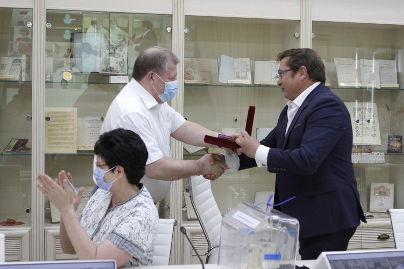 В начале совещания Дмитрий Александрович вручил почетный знак «Благодарность от земли Воронежской» проректору по контрольно-аналитической и административной работе Юрию Бубнову, а также почетную грамоту правительства Воронежской области первому проректору – проректору по учебной работе Елене Чупандиной.