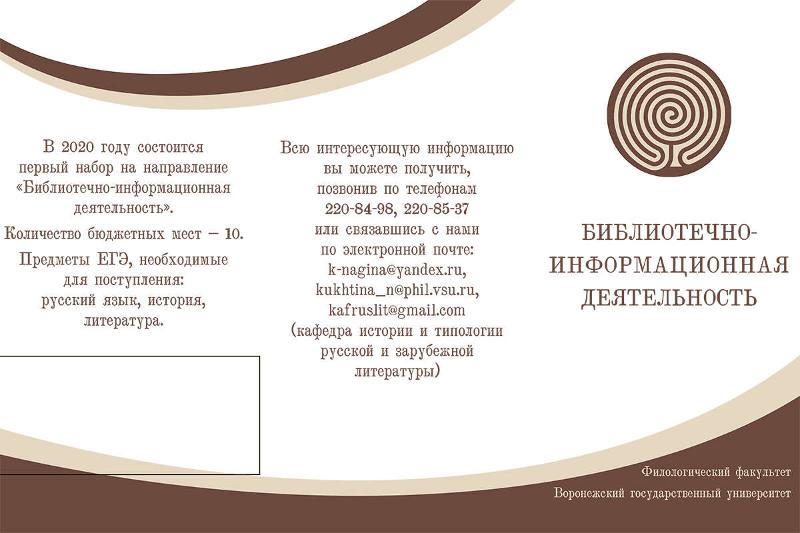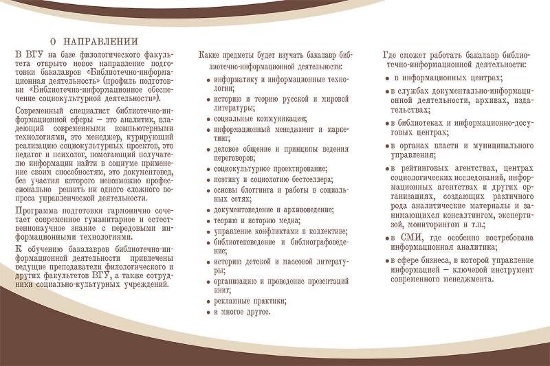 На филологическом факультете Воронежского госуниверситета идет набор на новое направление бакалавриата «Библиотечно-информационная деятельность» (профиль подготовки – «Библиотечно-информационное обеспечение социокультурной деятельности»).