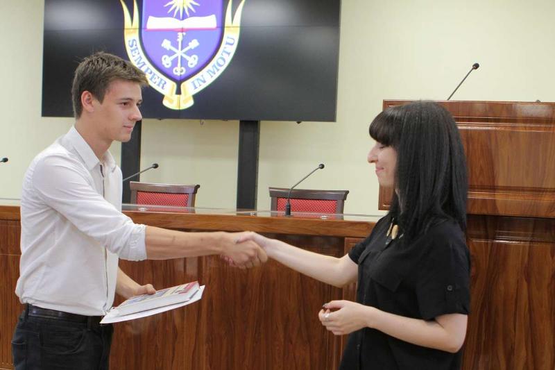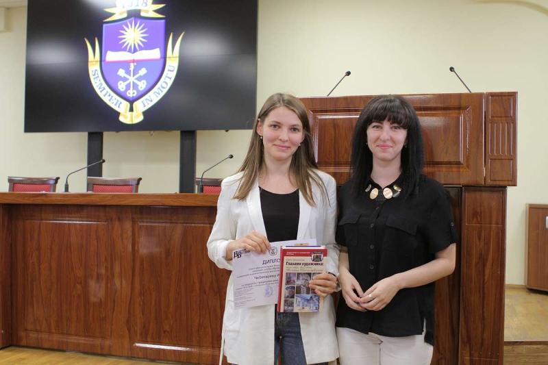 Заведующая отделом Воронежского областного художественного музея им. И.Н. Крамского Виктория Афанасьева наградила участников совместного проекта Совета ректоров вузов Воронежской области, редакции газеты «Вузовский вестник» и ВОХМ им. И.Н. Крамского «За верность традициям реалистического искусства». Дипломами отмечены студенты: Варвара Изакар, Ксения Климова, Елена Кичатай (Воронежский госуниверситет); Анжелика Чеботарева (Воронежский государственный педагогический университет); Мария Букина, Нина Орлова (Воронежский государственный институт искусств); Екатерина Баринова (Воронежский государственный опорный технический университет); Мария Анисимова, Ярослав Маркин (Воронежское художественное училище); Анастасия Бабынина (Курский государственный университет). Они получили в подарок книгу воспоминаний художника Петра Шолохова «Глазами художника: земляки, коллеги, Великая Отечественная». Награжденных поздравил Председатель Совета ректоров вузов Воронежской области, ректор ВГУ Дмитрий Ендовицкий. Он дал старт продолжению проекта в 2020-2021 учебном году.