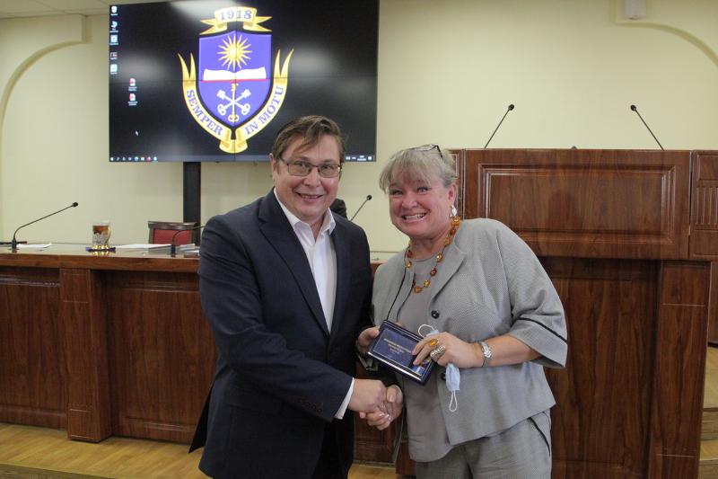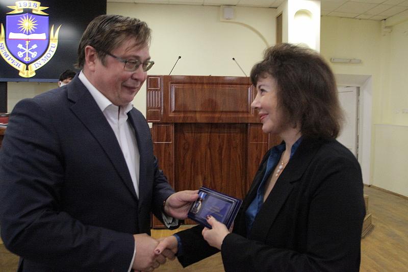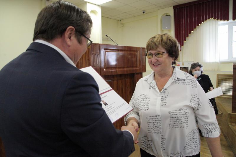 Ректор ВГУ Дмитрий Ендовицкий наградил сотрудников нашего вуза. Почётное звание «Почётный работник сферы образования Российской Федерации» получил заведующий кафедрой славянской филологии Геннадий Ковалёв. Благодарственное письмо губернатора Воронежской области Александра Гусева вручили заведующему кафедрой высокомолекулярных соединений и коллоидной химии Александру Шестакову. Почётное звание «Почётный работник ВГУ» присвоено ведущему специалисту центра по работе с информационными ресурсами Людмиле Джегерис и ведущему специалисту ОМС Альбине Кудасовой. Нагрудным знаком «За заслуги перед ВГУ» отмечены: профессор кафедры аналитической химии Вера Васильева, старший преподаватель кафедры физического воспитания и спорта Ольга Гусева, старший научный сотрудник кафедры общей и неорганической химии Вера Логачева, доцент кафедры экономической теории и мировой экономики Вера Матершева, декан медико-биологического факультета Татьяна Попова, доцент кафедры общего языкознания и стилистики Галина Селезнева.