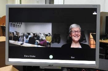21 октября в компьютерном классе факультета романо-германской филологии Воронежского госуниверситета состоялась видеоконференция на английском языке с профессором университета Астон (Бирмингем, Великобритания), Почётным доктором ВГУ Сью Гартон (Dr. Sue Garton). Онлайн-встречу для первокурсников магистерской программы «Преподавание иностранных языков с использованием онлайн-технологий» организовала доцент кафедры английской филологии Елена Чайка.