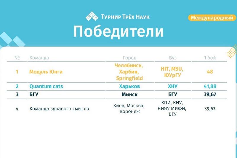 27–29 ноября состоялся Международный этап Турнира Трёх Наук. На этот раз впервые за всю историю Турнира отборочные состязания прошли в онлайн-формате. Это не помешало участникам – студентам и молодым учёным – достойно выступить на научных боях и презентовать решения интересных задач в области физики, химии, биологии.