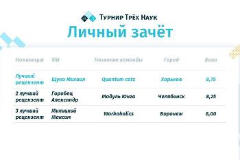 – В последнее годы принимаю участие в Турнире не для призов, а для развития в науке. На мой взгляд, турнирный формат позволяет участникам задуматься над исследовательскими задачами, изучить и применить различные методы решения задач и, конечно, научиться грамотно представлять решение, формулировать, высказывать и защищать мнение. Грамотно оформленное решение таких задач иногда может стать полноценной публикацией. Ну и, конечно, нельзя забывать про другие возможности, которые способно предложить турнирное движение: знакомство с возможными работодателями, налаживание контактов с участниками из других городов и стран. Турнир является площадкой, которая способна предоставить целый спектр возможностей для любого студента в зависимости от его желаний и потребностей, – отметил лучший игрок Турнира Роман Кахнидзе.