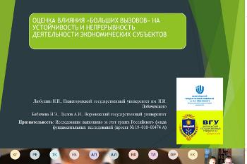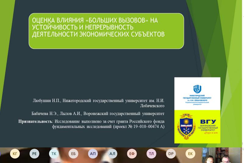 Доцент и профессор кафедры международной экономики и внешнеэкономической деятельности факультета международных отношений Воронежского госуниверситета Анатолий Лылов и Надежда Бабичева выступили в секции «Эффективность предприятия в современном мире» с докладом на тему «Оценка влияния «больших вызовов» на устойчивость и непрерывность деятельности экономических субъектов». Большой интерес аудитории вызвали условия возникновения «больших вызовов», которые одновременно являются причиной и способом преодоления возникающих проблем.