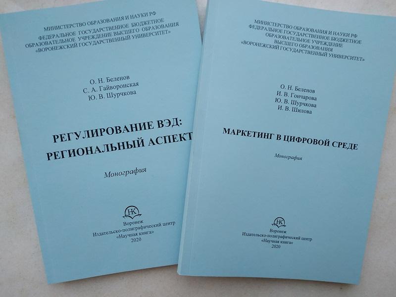 В декабре 2020 года сотрудники факультета международных отношений ВГУ опубликовали две монографии – «Маркетинг в цифровой среде» и «Регулирование ВЭД: региональный аспект».
