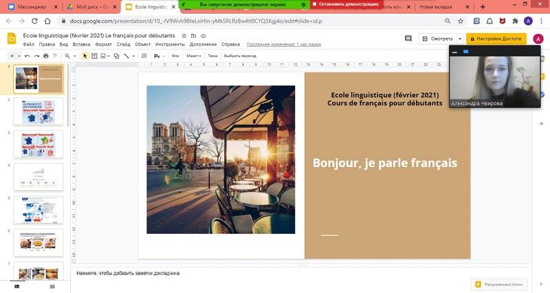Завершила работу Субботней школы – 2021 преподаватель кафедры французской филологии Александра Чвирова. Она провела ознакомительное занятие по французскому языку для начинающих.