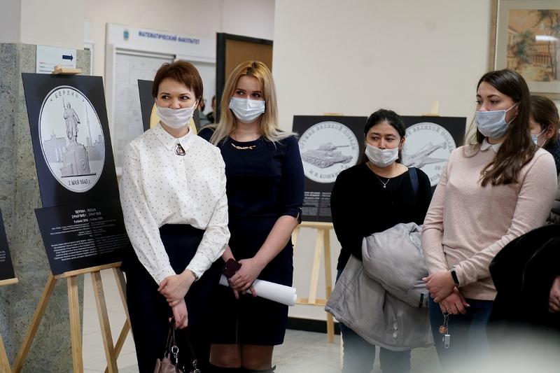 17 февраля в холле третьего этажа главного корпуса состоялось открытие выставки памятных монет «Истории Победы», посвящённой 75-летию Победы в Великой Отечественной войне. Всего в экспозицию вошли 25 монет разных лет. Подлинники памятных монет можно будет увидеть в Музее истории ВГУ. Кроме увеличенных копий монет, представлены и материалы о Великой Отечественной войне.