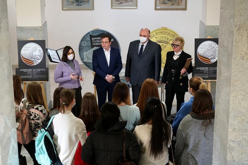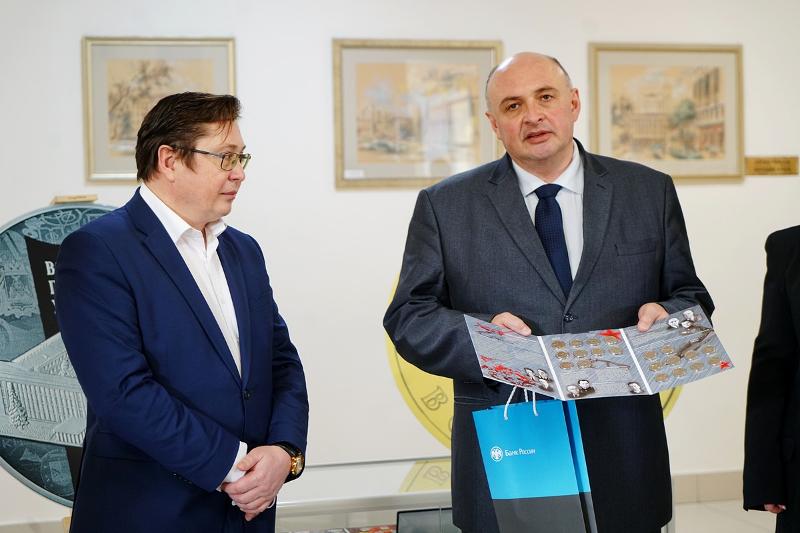 Управляющий Воронежским Отделением Банка России Роман Костянский передал в дар ВГУ коллекционный альбом памятных монет «Оружие Великой Победы: конструкторы оружия», памятную монету «Спасибо врачам, медсёстрам!», посвящённую борьбе с коронавирусом, а также монету к 150-летию И.А. Бунина. Банк России также предоставил для экспонирования в ВГУ уникальные документы – «Переписка с Правлением и отделениями Госбанка по эвакуации из Воронежа» за сентябрь – декабрь 1942 года.