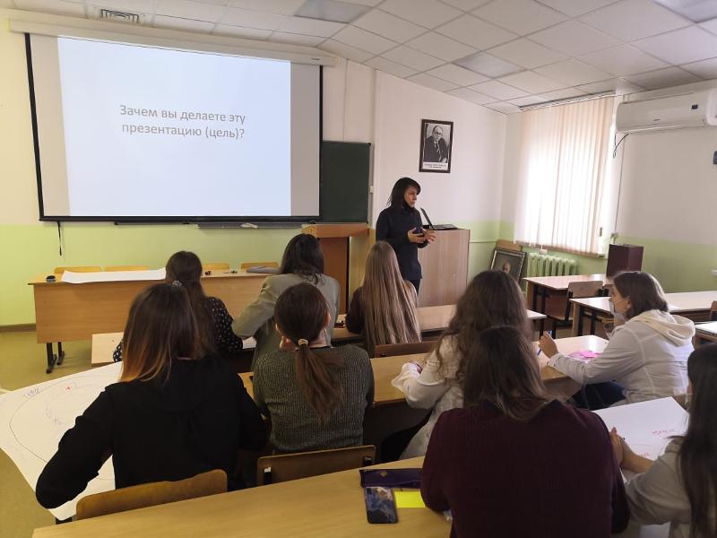 13 февраля года на заседании Студенческого научного общества кафедры управления и экономики фармации и фармакогнозии состоялось выступление практикующего бизнес-тренера, эксперта по профориентации, исследователя в развитии творческого и креативного мышления Елены Каюковой. Она рассказала студентам о навыках публичного выступления. Ребята узнали, как формулировать идеи и воплощать их в проект. Елена Каюкова также объяснила, почему на этапе формирования проекта вопросы необходимо задавать не только себе, но и окружающим.