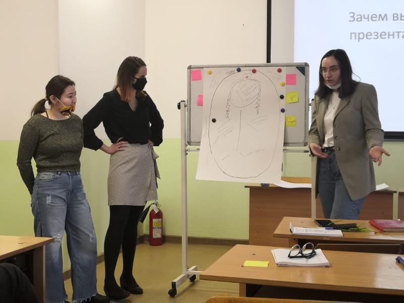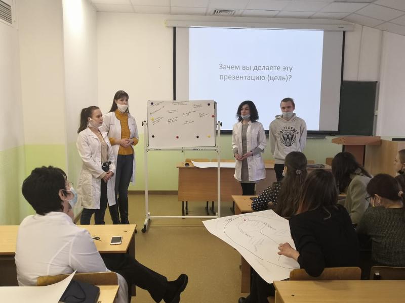 Каждая группа студентов попробовала сформировать проблему в области фармации и обосновать важность её решения. Выступление тренера вызвало следующие вопросы: «Как набрать команду для развития проекта?», «Как поверить в себя?», «Как избежать морального и профессионального выгорания?», «Где можно представлять собственные проекты?».