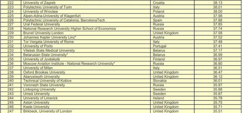 Среди 41 российского вуза в этом рейтинге ВГУ находится на 21 месте и на 241 среди лучших вузов Европы.
