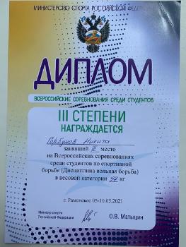6–7 мая в городе Раменское Московской области прошёл Чемпионат России по вольной борьбе среди студентов. Третье место занял студент второго курса геологического факультета Никита Горбунов (весовая категория – до 97 кг). Студент математического факультета Евгений Просветов стал пятым (весовая категория – до 74 кг). Спортсменов готовили мастер спорта СССР Александр Беланов и мастер спорта России Сергей Корчагин.