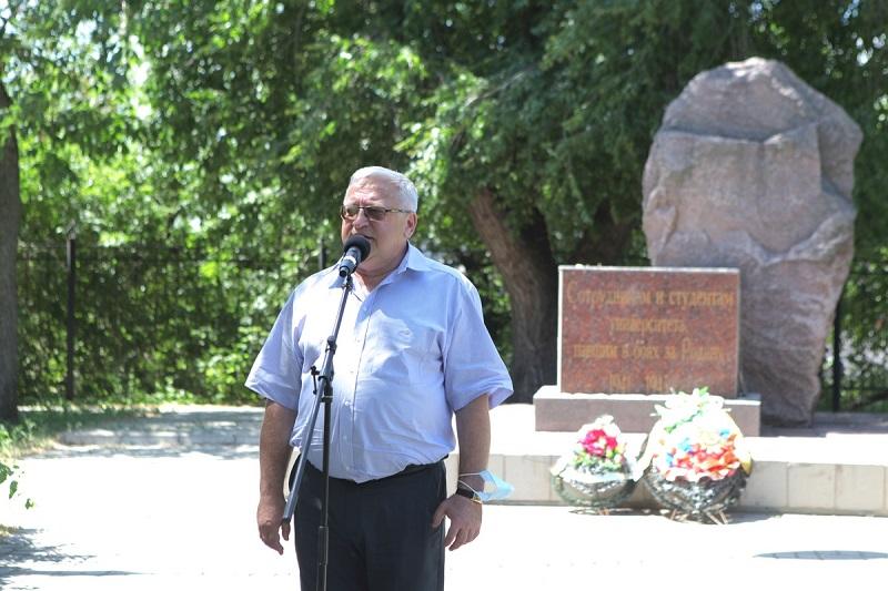 22 июня, в День памяти и скорби, в ВГУ состоялся митинг, посвящённый этой трагической дате. Со дня начала Великой Отечественной войны прошло 80 лет. Возле памятника погибшим в годы Великой Отечественной войны студентам, сотрудникам и преподавателям ВГУ собрались представители вуза.
