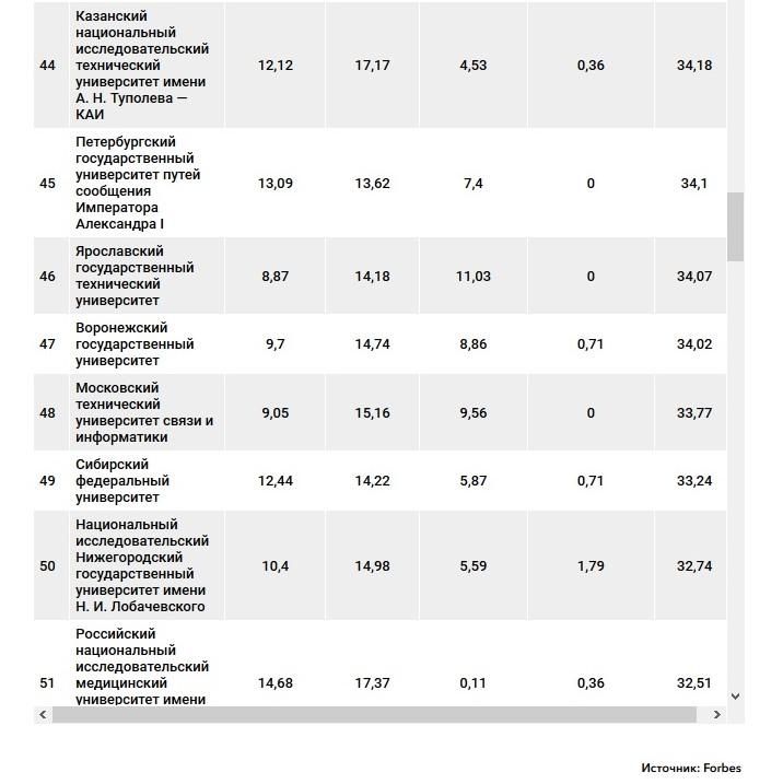 Воронежский государственный университет вошёл в четвёртый рейтинг лучших российских вузов по версии Forbes. В топ-100 рейтинга ВГУ оказался на 47-м месте.