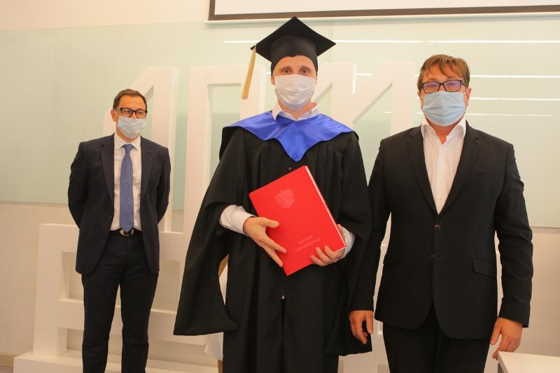 15 июля в ВГУ состоялось вручение дипломов магистрам первого потока совместной с ДОМ.РФ программы – «Сопровождение банковских контрактов». Ректор ВГУ Дмитрий Ендовицкий и директор Единого Сервисного Центра ДОМ.РФ Михаил Кондратьев вручили дипломы 13 магистрам.