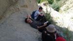 Преподаватель поручил парням из нашей бригады добыть образцы морены. Их путь лежал через весь овраг, поросший маленькими деревьями и кустами. На задание вышли трое и спустя 20 минут вернулись грязные, потные и слегка поцарапанные ветками, но без образцов. Они не смогли добраться до противоположной стороны оврага. Мы не учли, что путь, которым в прошлый год практиканты добирались до цели, полностью зарос и скрылся под слоем густой растительности. Теперь нам предстояло искать другой путь и идти по нему уже другим составом, потому что предыдущие исследователи наотрез отказались повторять подвиг. Мне в паре со смельчаком из бригады самому пришлось побывать внизу: услышав парней, которые пошли в первый раз за образцами, я скептически отнёсся к описываемым ими проблемам и вызвался преодолеть тот же путь. Взяв упаковки для образцов, топор, лопату и палку для опоры мы пошли тем же путём, но быстро поняли, что пройти действительно невозможно. Поэтому мы вернулись и попробовали зайти с другой стороны. Существенно ситуацию это не исправило, но нам ничего не оставалось, как прорубать себе путь к противоположной стороне оврага. Спустя 15 минут мы преодолели самые трудные на нашей памяти 20 метров и добрались до цели, собрали образцы и тем же путём вернулись обратно. Теперь, потные, грязные и поцарапанные, снизу вышли уже мы, но с образцами. Ситуацию усугубила 30-ти градусная жара, которая не давала восстановиться после неплохой кардиотренировки. Однако нам предстояло описать добытые образцы, записать их в каталог и сложить в отдельный мешок. Те три часа, в которые вошла лекция на открытом воздухе, незапланированный курс туризма и куча записей, мы запомнили на ближайшие несколько недель. А ведь это был только первый день…