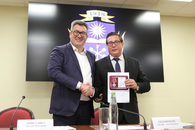 Руководитель воронежского управления ФНС Николай Приставка поздравил преподавателей, сотрудников и студентов ВГУ с Днём знаний, отметив, что заседание общественных советов было приурочено к этой дате. Николай Приставка вручил Дмитрию Ендовицкому медаль Федеральной налоговой службы «За содействие ФНС России», отметив высокий вклад ректора ВГУ на посту председателя Общественных советов.