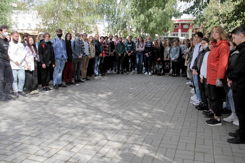 В митинге приняли участие руководство университета, преподаватели, сотрудники, студенты. Открыла митинг начальник отдела по воспитательной работе ВГУ Александра Назарова. Она рассказала об истории трагической даты, когда в сентябре 2004 года террористы захватили и удерживали в качестве заложников учеников школы № 1 североосетинского города Беслана.