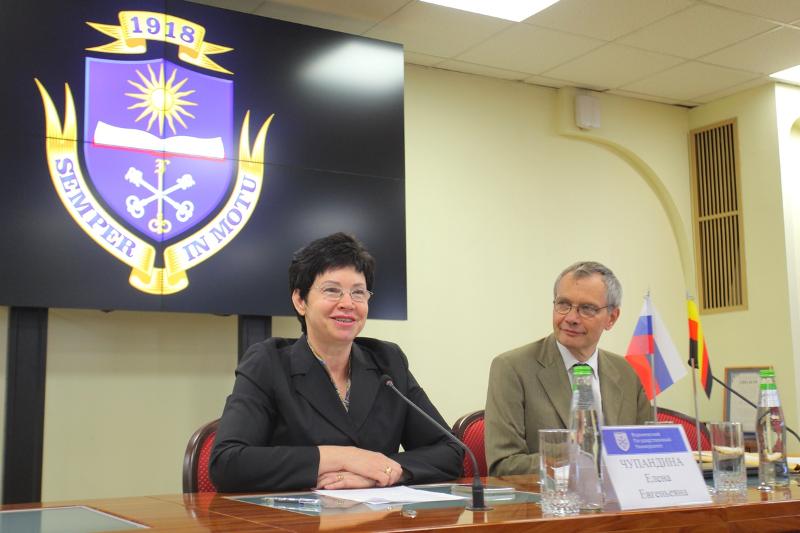 14 сентября в конференц-зале главного корпуса ВГУ представители вузовского сообщества встретили профессора Гёттингенского университета Маттиаса Фрайзе – филолога, исследователя русской литературы. Встречу открыла первый проректор – проректор по учебной работе Елена Чупандина, которая представила собравшимся гостя.