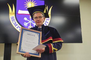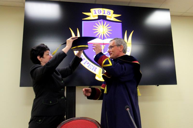 Маттиас Фрайзе – известный учёный и педагог, профессор Семинара славистики Гёттингенского университета, автор научных работ, посвящённых А.С. Пушкину, М.М. Бахтину, член Международного Общества Достоевского. Осенью прошлого года к регалиям Маттиаса Фрайзе добавилось ещё одно звание – он стал Почётным доктором ВГУ. Но из-за ковидных ограничений церемония награждения отодвинулась, и только спустя почти год профессору Фрайзе были вручены докторская мантии и почётный знак «За заслуги перед ВГУ».