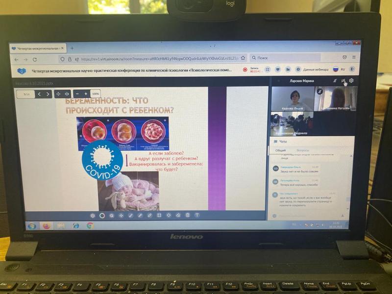 На конференции были освещены различные аспекты психологической помощи населению в условиях пандемии. Доцент кафедры педагогики и педагогической психологии Марина Ларских представила доклад, посвящённый проблеме поддержания психологического здоровья медицинских работников – «Профилактика эмоционального выгорания медицинских сестёр Воронежского областного клинического психоневрологического диспансера во время первой и второй волн пандемии».